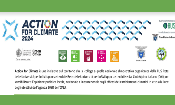 Action for Climate è una iniziativa sul territorio che si collega a quella nazionale dimostrativa organizzata dalla RUS Rete delle Università per lo Sviluppo sostenibile e dal Club Alpino Italiano (CAI) per sensibilizzare l’opinione pubblica locale, nazionale e internazionale sugli effetti dei cambiamenti climatici in atto alla luce degli obiettivi dell’agenda 2030 dell’ONU.